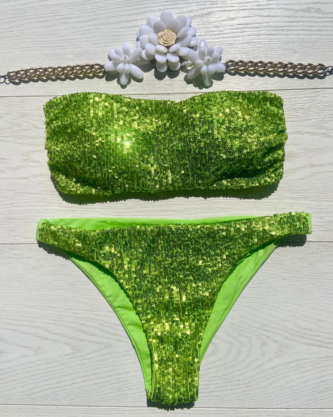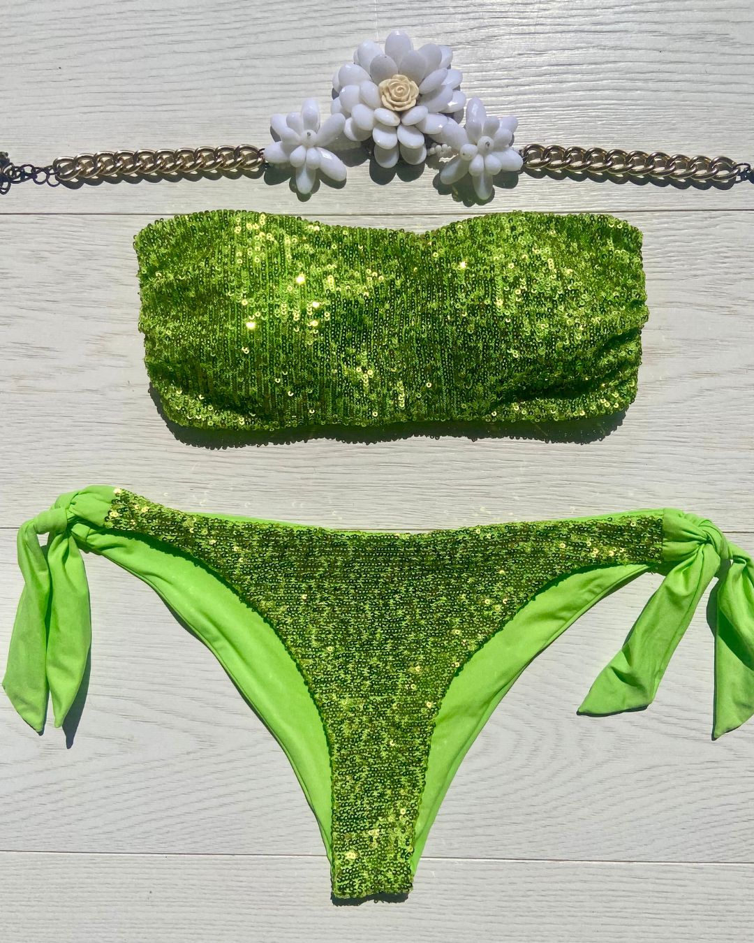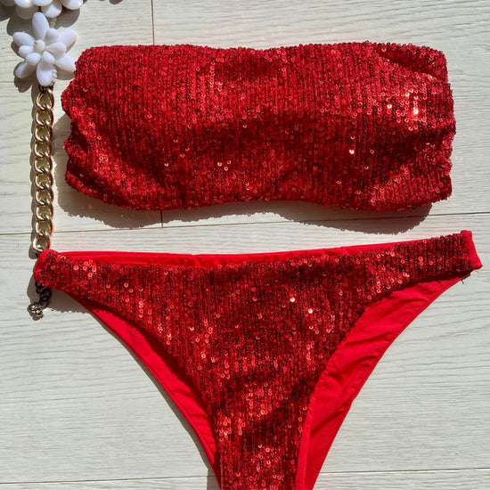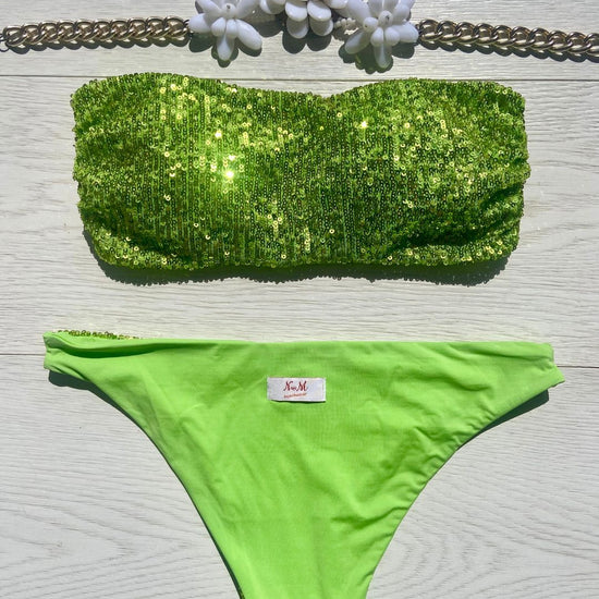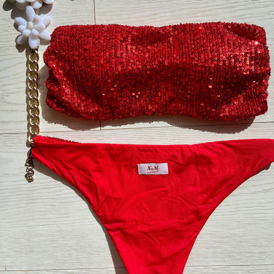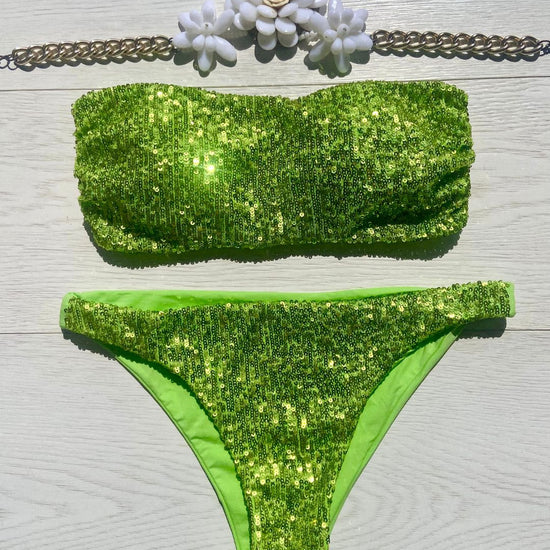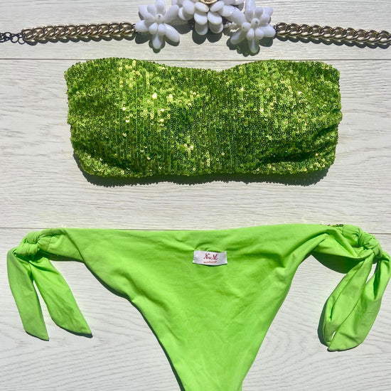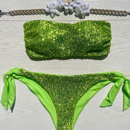 Costume impreziosito con micropailletes, coppetta estraibile e slip con laccetti