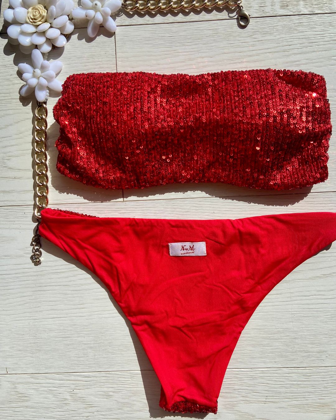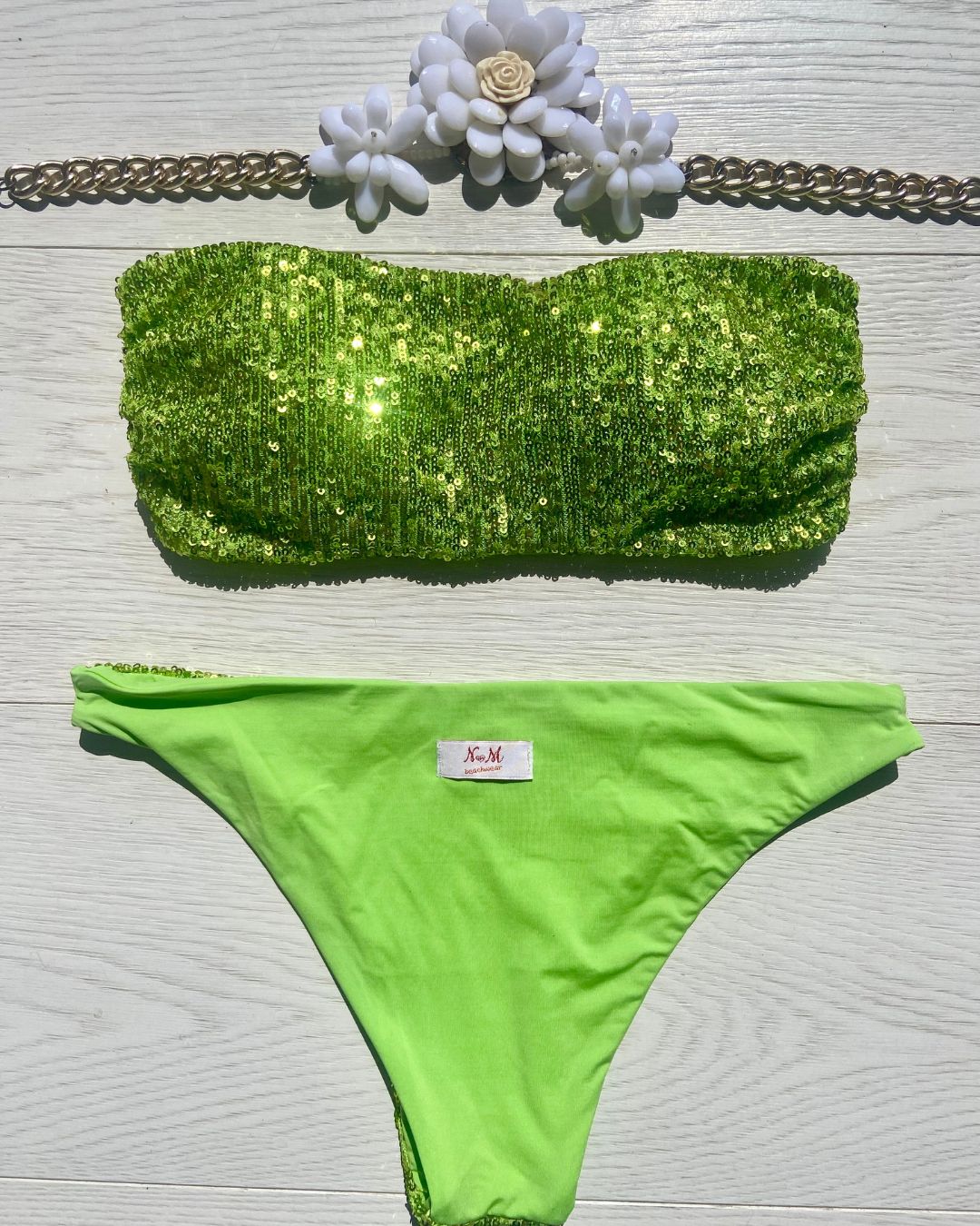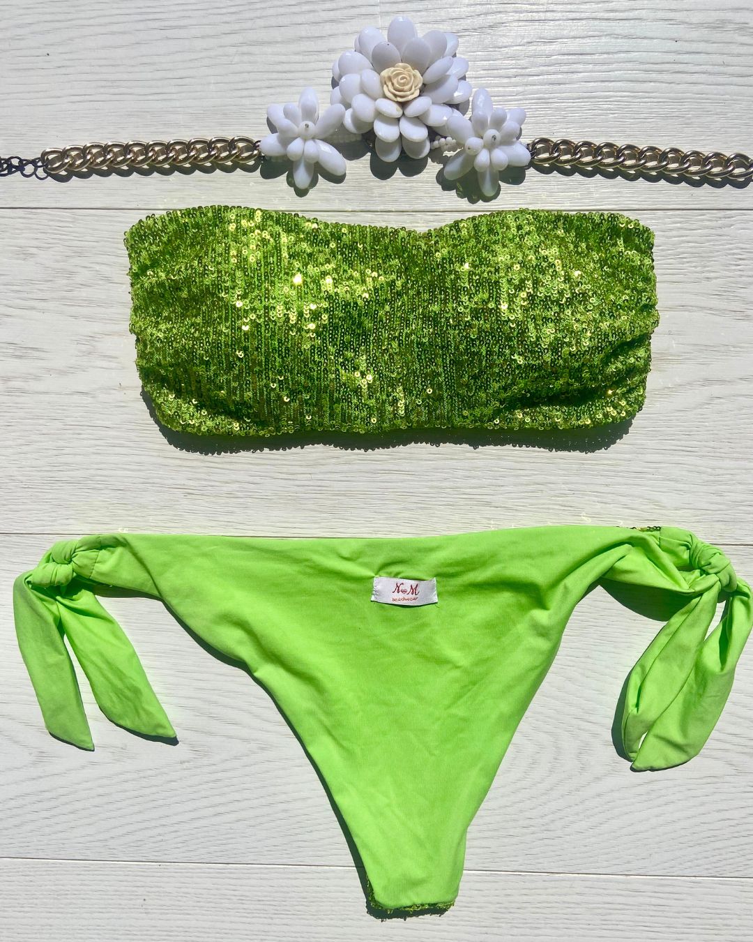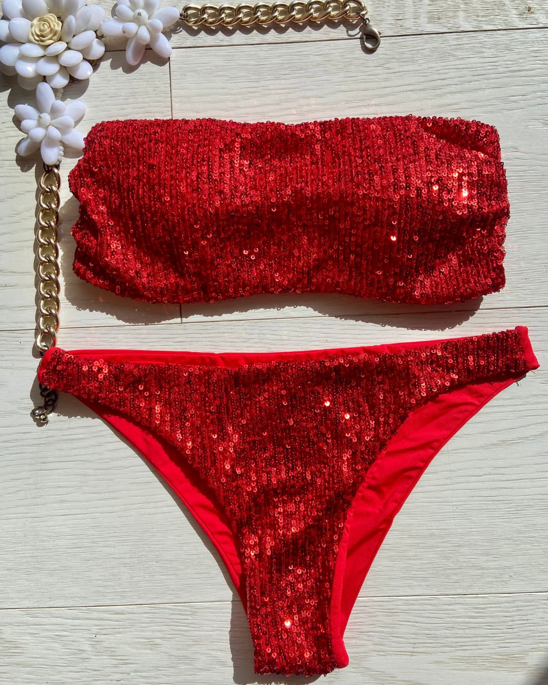 Costume impreziosito con micropailletes, coppetta estraibile e slip con laccetti