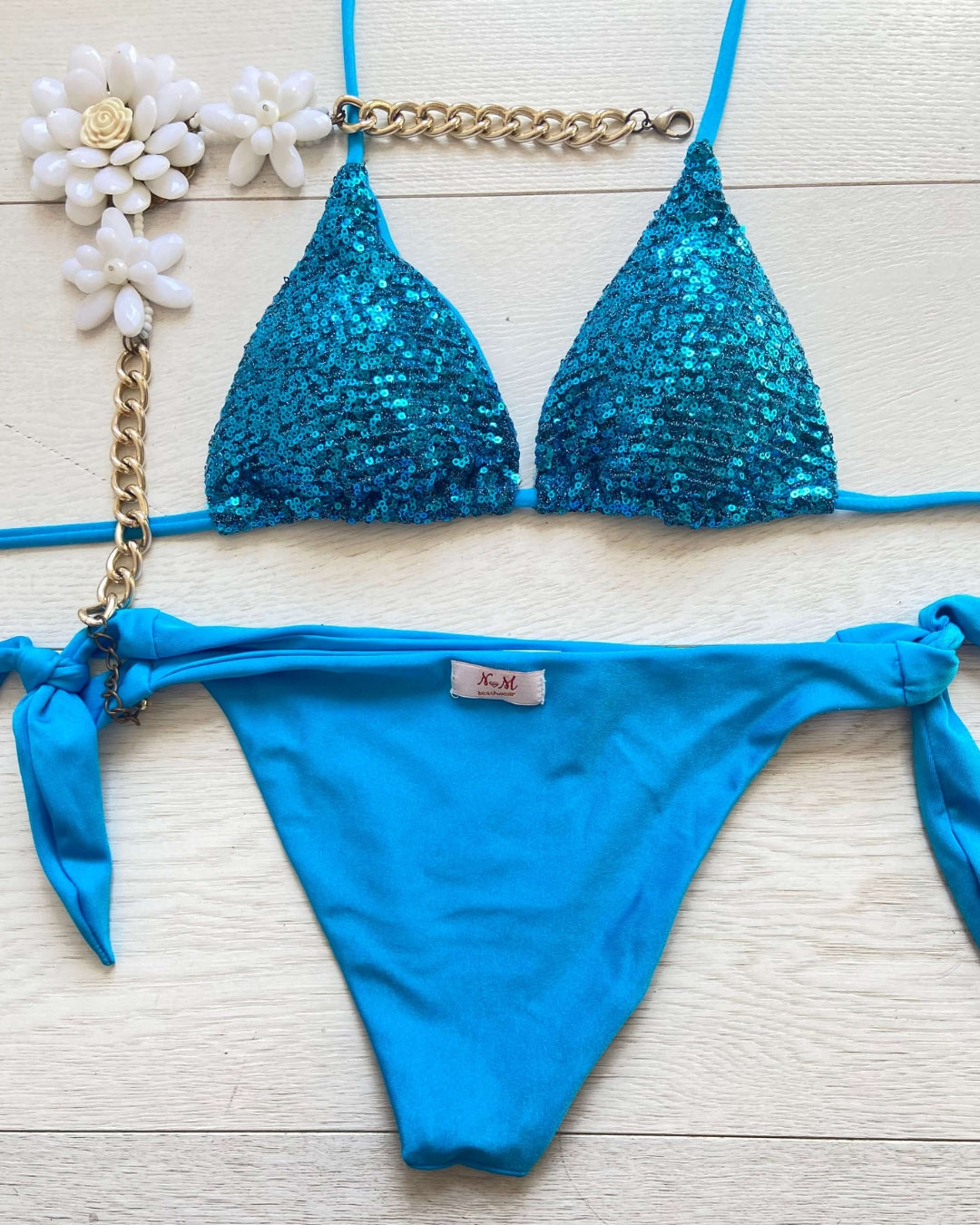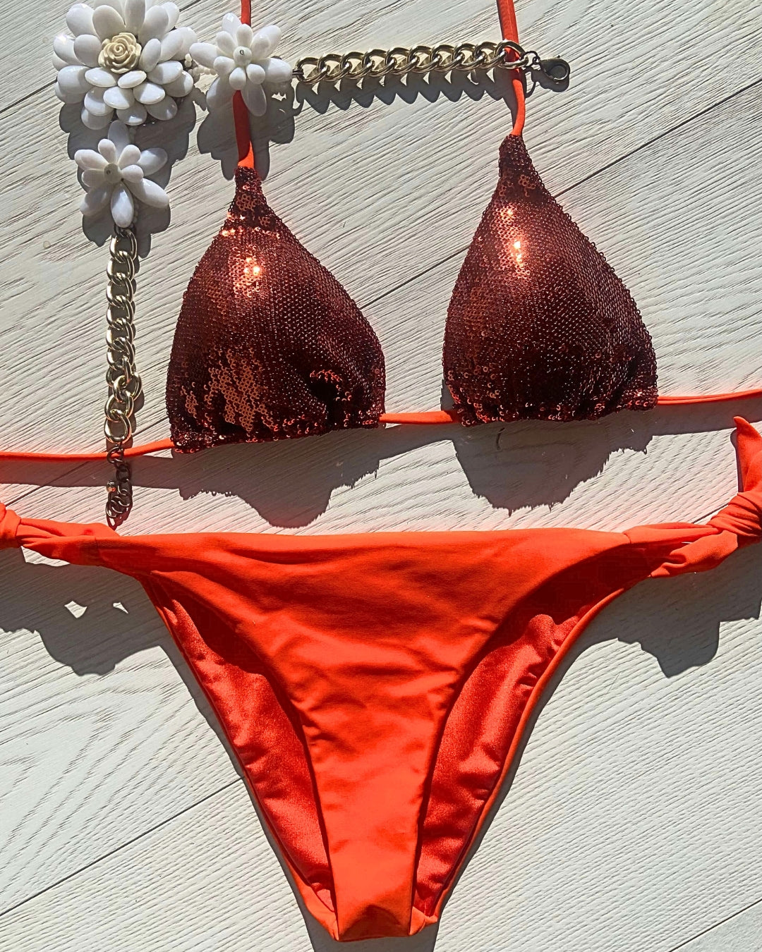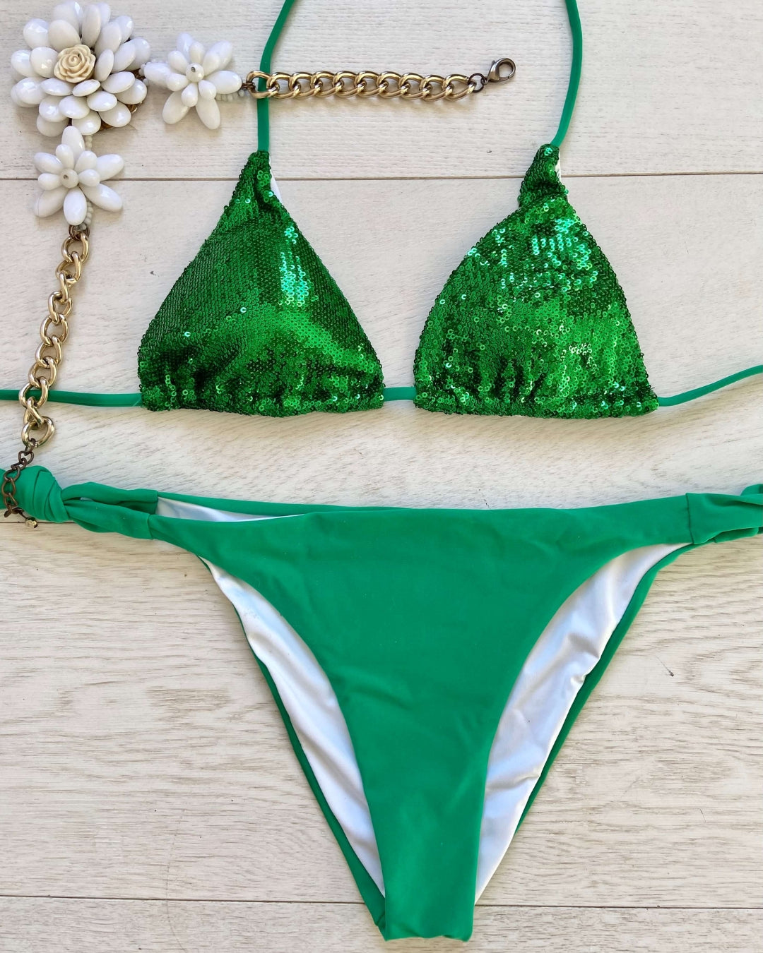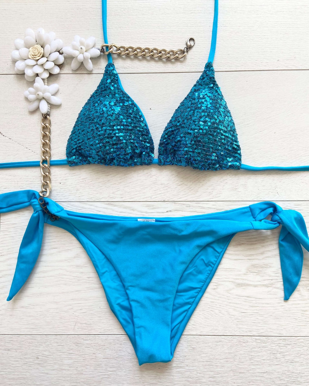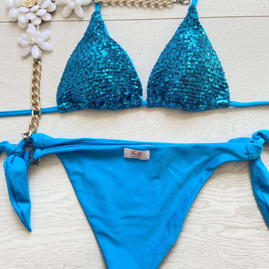 Lo slip con laccetti aggiunge un tocco di femminilità e versatilità, permettendoti di adattare il bikini al tuo stile. Perfetto sia per rilassarti in spiaggia che per brillare in piscina. Esprimi il tuo stile in modo luminoso e senza sforzo con "Glittering". Preparati a catturare sguardi ammirati e a vivere ogni momento dell'estate con stile e sicurezza. Non lasciarti sfuggire l'opportunità di far brillare la tua estate: acquista subito il tuo "Glittering" e regna sovrana sotto il sole estivo!