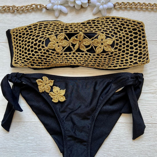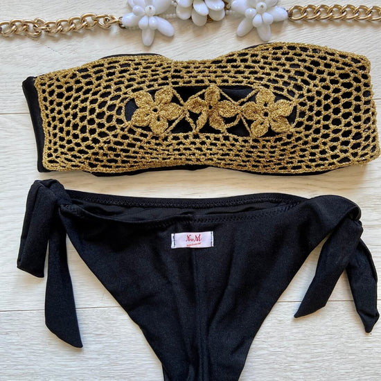 Questo modello è l'Iconic Crochet Black a Fascia con slip con laccetti. Contattaci e richiedi qualsiasi personalizzazione per creare il tuo modello esclusivo!