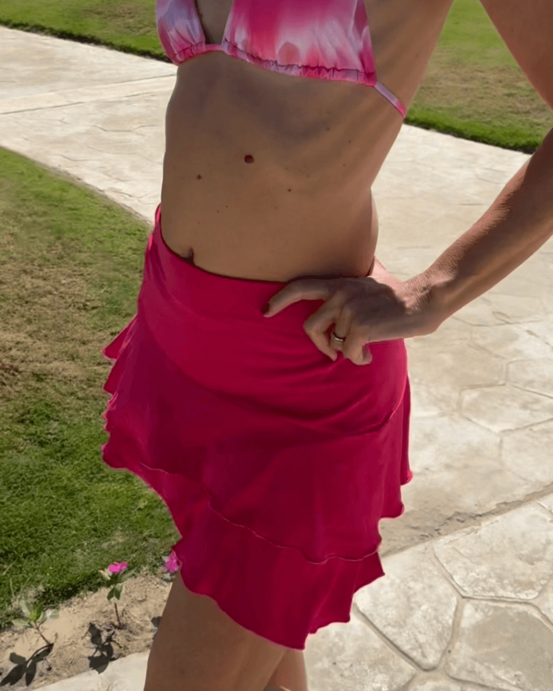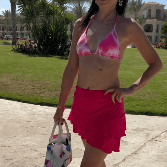 Minigonna elasticizzata in vita che si adatta perfettamente a tutte le silhoutte. Comoda da indossare in spiaggia come copri-costume o per una serata speciale