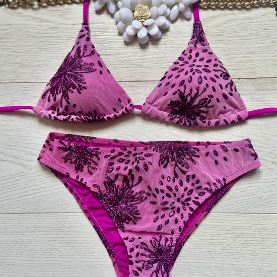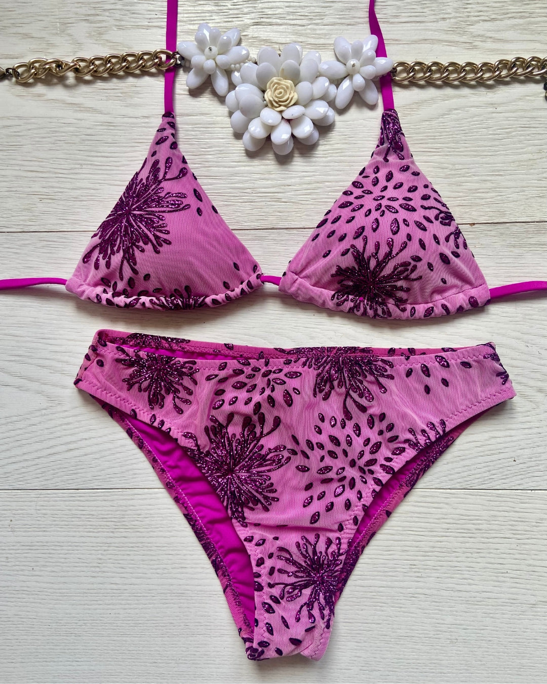 Scegli il bikini "Pink Roses" e trasporta l'eleganza dei fiori nel tuo guardaroba. Fai una dichiarazione di stile unica e preparati a brillare sotto il sole.