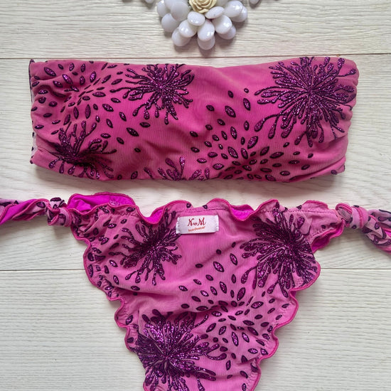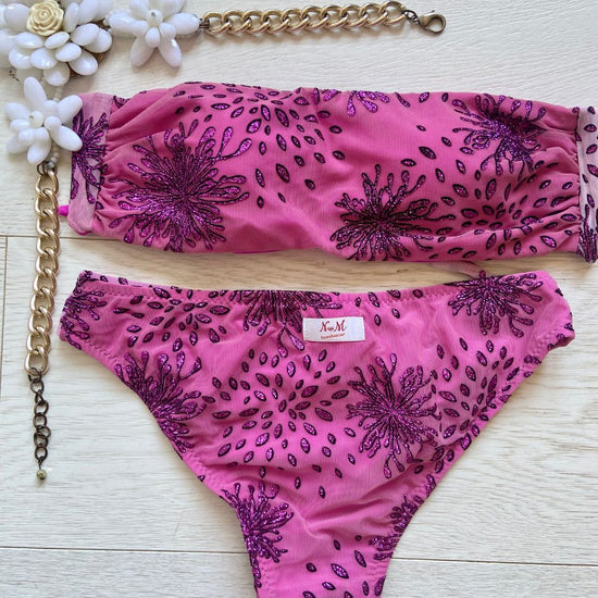 Il bikini "Pink Roses" a fascia è un omaggio alla delicatezza dei fiori e al fascino intramontabile dell'estate. Questo bikini incarna l'eleganza e la femminilità, regalandoti un look radioso con il suo top in un rosa intenso.